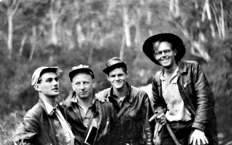 Clive and David each worked under Dan Moye’s guidance for more than 12 years. Between 1952 and 1956 they formed a 4-man team with Field Assistants Reg Barnett and Gil Shaw, working away from home each week, mostly in remote areas and living in either tents or small huts.